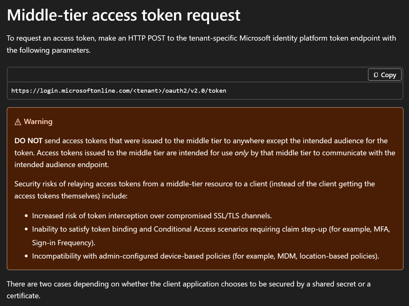/avoid-entra-conditional-access-sccauth/images/microsoft-docs-obo-token-warning.png