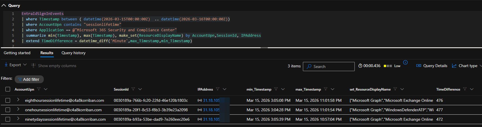 Normally only IP addresses from Microsoft Defender or the sign-in IP address should request data from Microsoft Graph. Because the attacker cannot hide her IP address from these logs, they are different from the original sign-in IP address. If you want to make sure you reduce any potential noise, you can exclude all IP addresses with a successful sign-in.